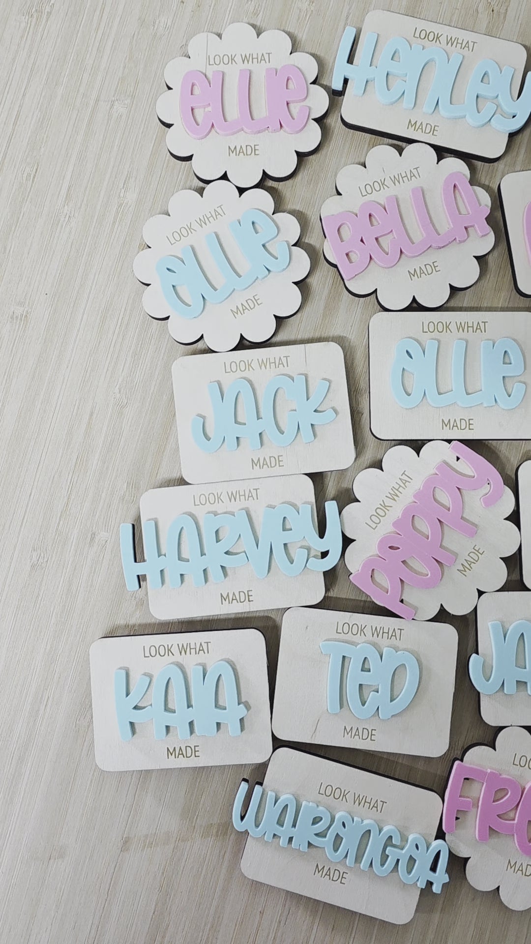 Each personalised magnet is made from 5mm poplar/birch ply with an acrylic name.
