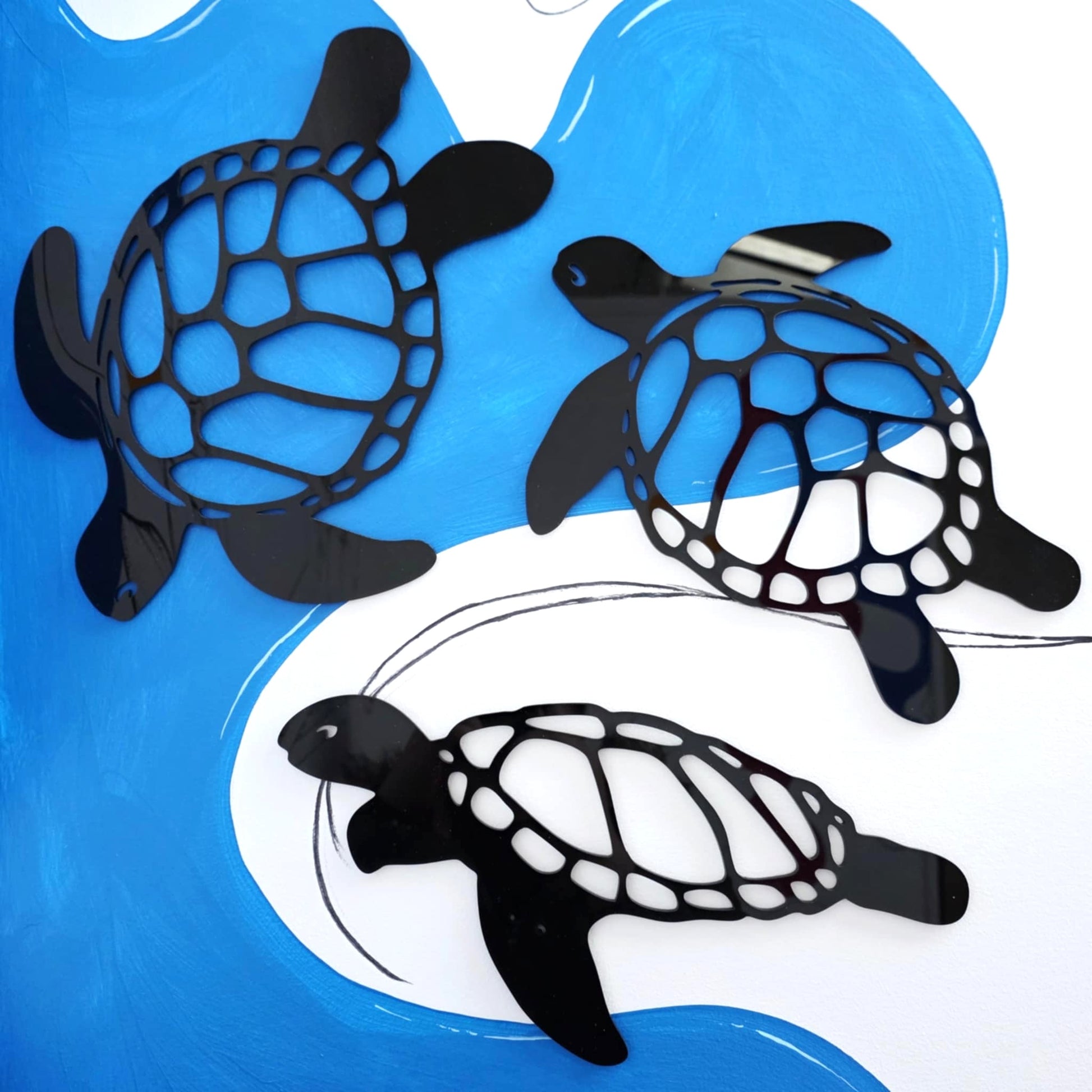 What could be cuter on your walls than a set of sea turtles?! Suitable for indoors or outdoors.